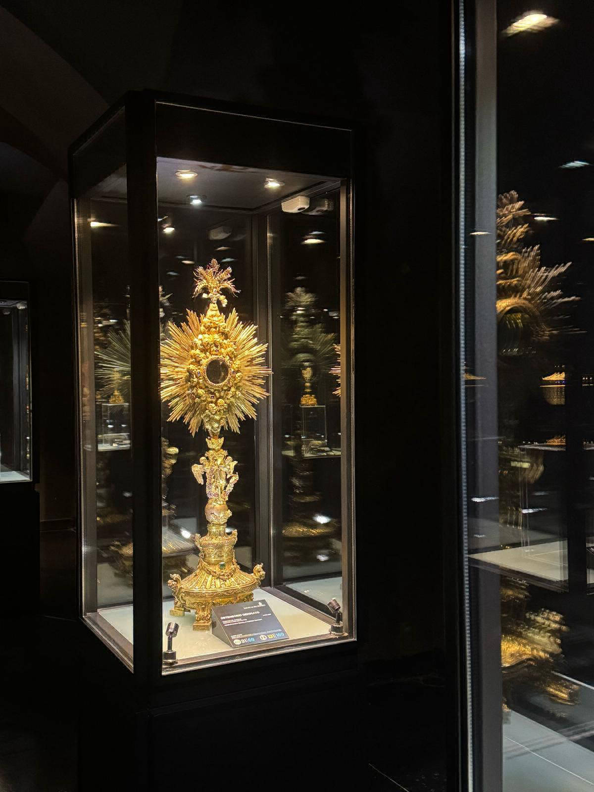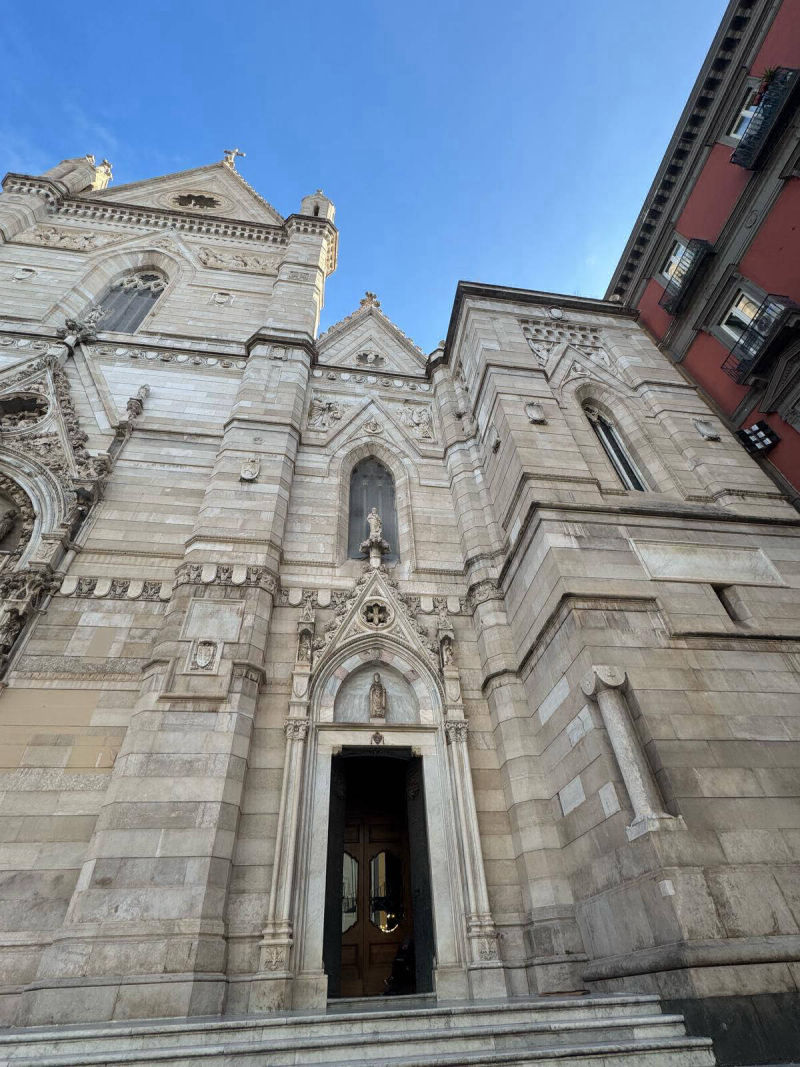 Quarta tappa: Durante la dominazione angioina, Carlo II d’Angiò fece realizzare un prezioso busto-reliquiario in argento dorato, realizzato da orafi francesi, per custodire le reliquie visibili: la testa e il sangue. Nel 1305, le reliquie furono per la prima volta esposte alla pubblica venerazione, formalizzando e rafforzando il culto. Il figlio, Roberto d’Angiò, fece costruire una teca d’argento per le ampolle del sangue, oggi ancora conservata nella Cappella del Tesoro.
